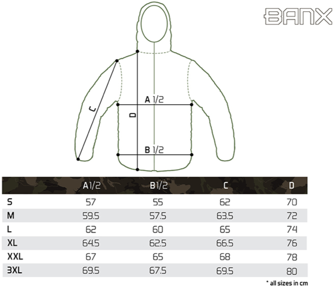 A dizájnt a fekete szín és a stílusos, szabadalmaztatott BANX álcázás kombinációja jellemzi. Ennek köszönhetően a kabát nemcsak horgászathoz, hanem mindennapi viseletként is tökéletes választás.